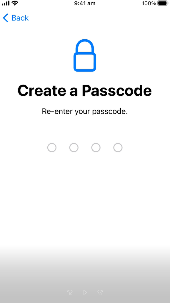 | Step (11) On the Create a Passcode screen, re-enter passcode.