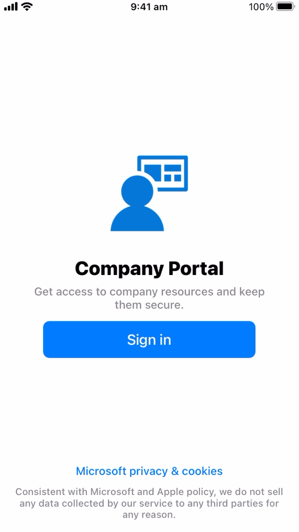 Step (1) On the Company Portal screen, select ‘Sign In’.