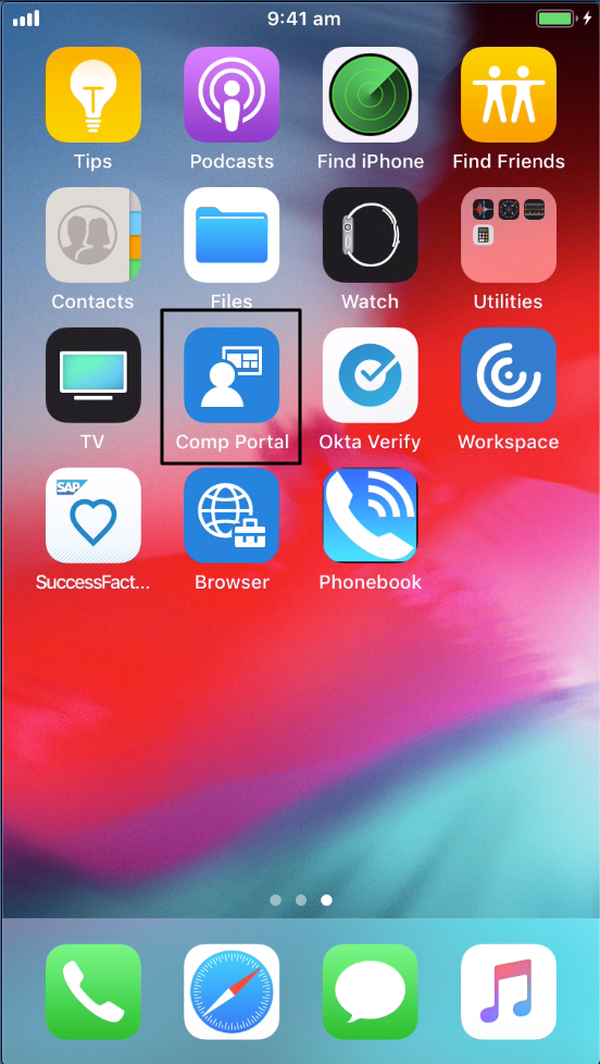 | Step (15) Select ‘Company Portal’ from the Home screen.