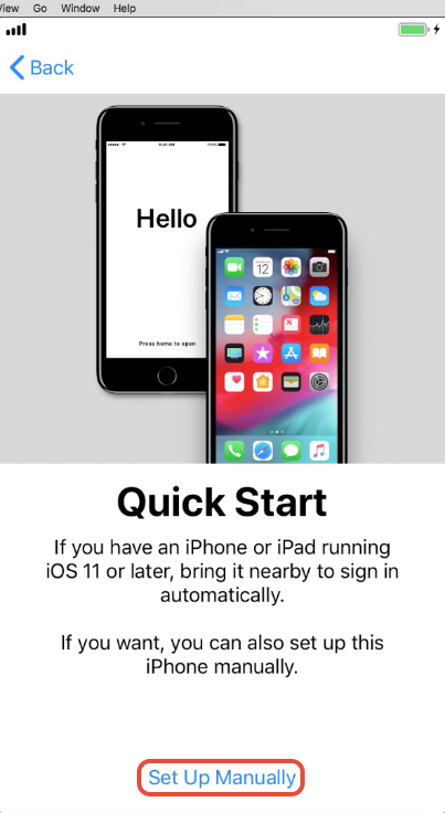 | Step (3) On the Quick Start screen, tap on 'Set Up Manually'.