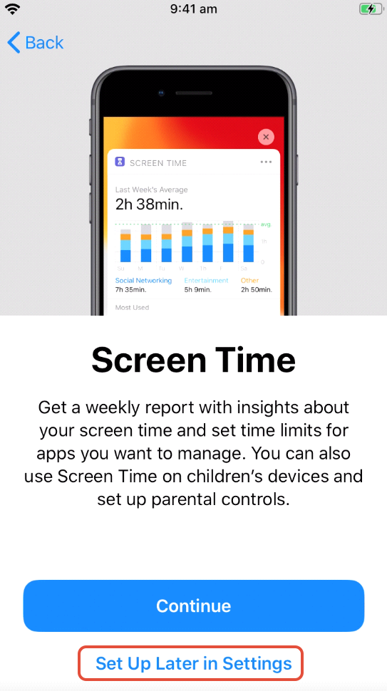 Step (16) On Screen Time screen, tap on ‘Set Up Later in Settings’.