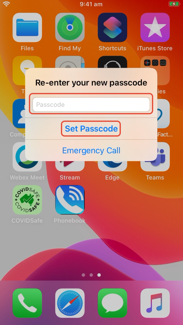 Step (14) Re-enter the new passcode and tap on ‘Set Passcode’.