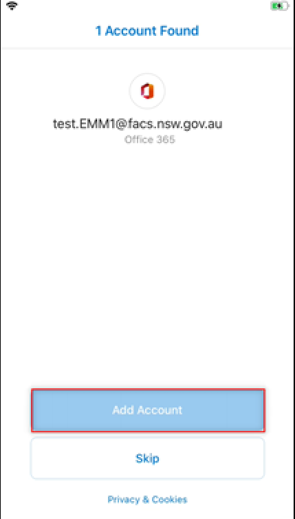 | Step (19) On the Account Found screen, select ‘Add Account’.
