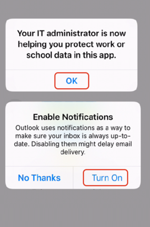 Step (23) Select ‘OK’ and ‘Turn On’ for these notifications.