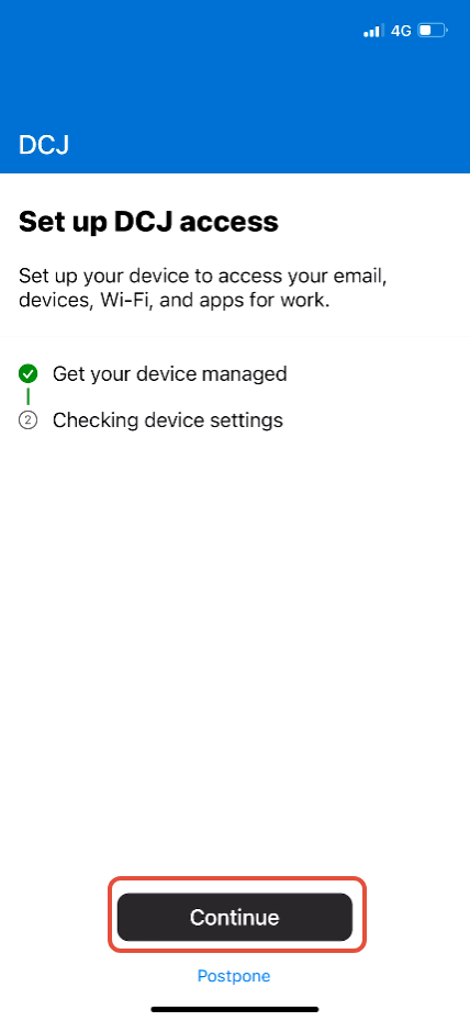The following guide provides information on how to activate and enrol your new device in DCJ’s mobile device management software for the first time and then install DCJ Corporate applications. You will need to complete this process prior to using your new device and this will take up to 60 minutes.