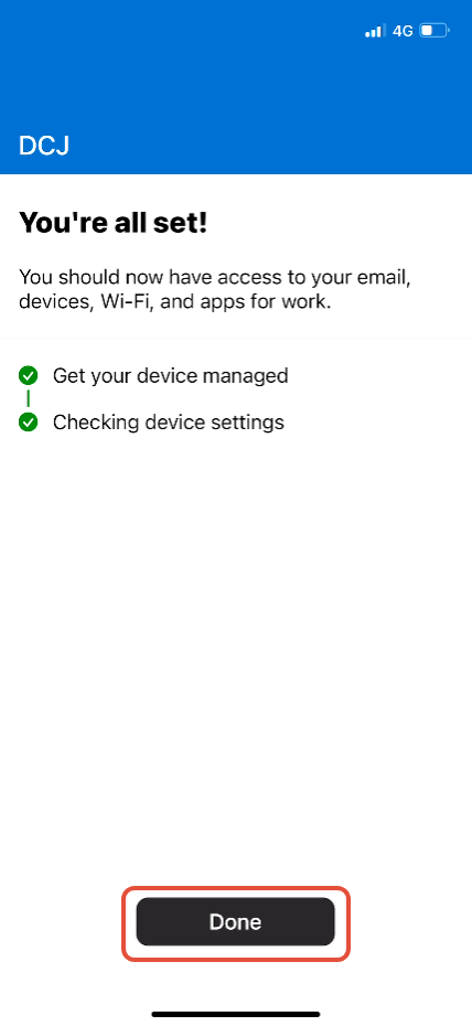 Your device has now been successfully enrolled and DCJ can manage this iPhone's settings.