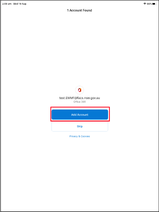 | Step (15) On the Account Found screen, select ‘Add Account’.